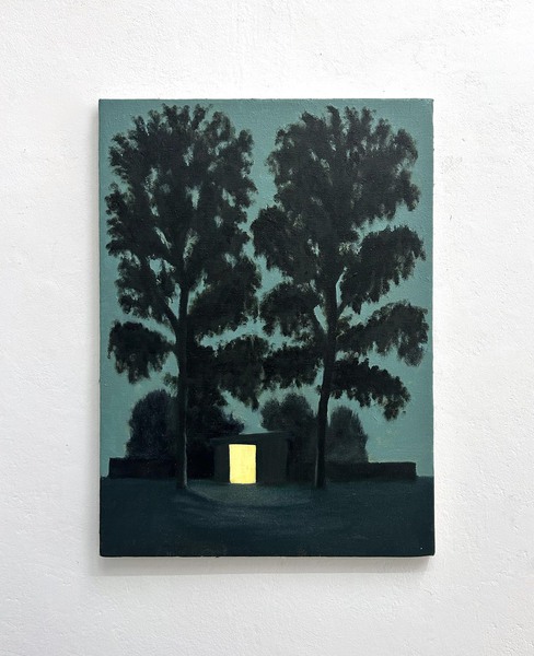 Eduard Kiesmann positions himself in between. His works initially emerge digitally—on the iPad—yet are consistently translated into oil painting. The screen functions as